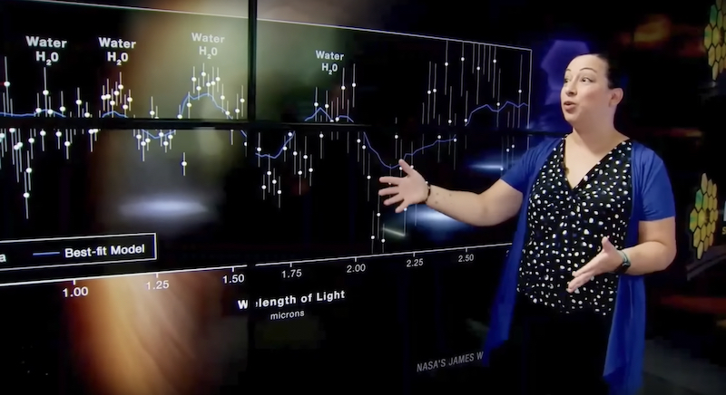 Im Spektrum des Exoplaneten WASP-96b konnten die Forschenden Wasser nachweisen. Der heiße Gasplanet umkreist einen sonnenähnlichen Stern in rund 1150 Lichtjahren Entfernung. © NASA, ESA, CSA, and STScI